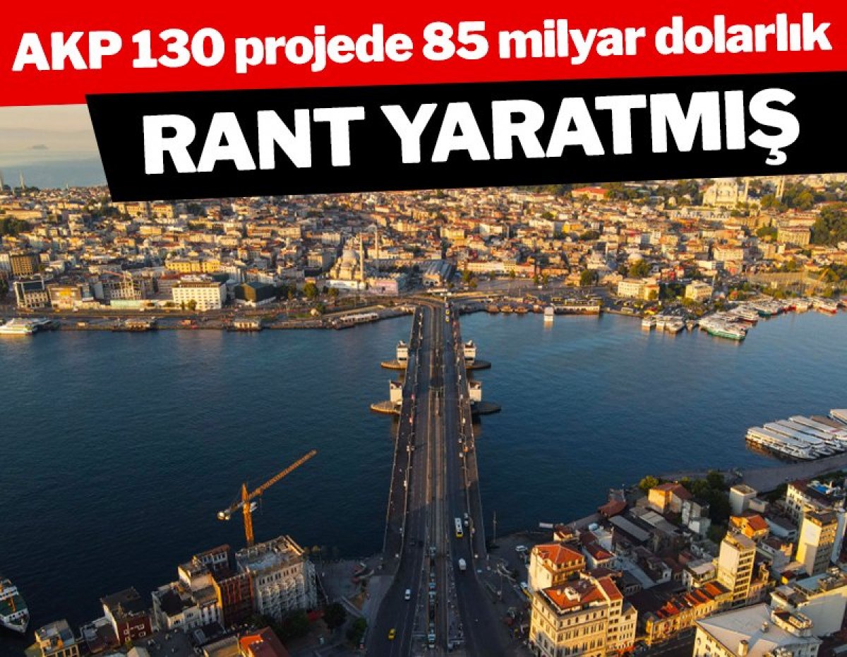 İBB’nin 3 yıllık araştırmasının sonuçlarına göre, AKP döneminde imza atılan 130 inşaat projesinden toplam 1 trilyon 486 milyar 900 milyon 741 bin 243 TL rant yaratıldığı ortaya çıktı.