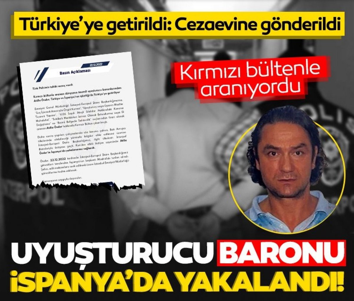 Kırmızı bültenle uluslararası seviyede aranan uyuşturucu baronu Atilla Önder, Türk polisinin takibi sonucu İspanya'da yakalandı. Uyuşturucu kaçakçısı Önder, Türk Hava Yolları'nın tarifeli uçağıyla İspanya'nın başkenti Madrid'ten İstanbul Havalimanı'na getirildi. Önder hakkındaki karar da verildi