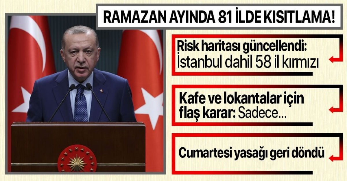 Cumhurbaşkanlığı Kabine Toplantısı, Cumhurbaşkanlığı Külliyesinde Başkan Recep Tayyip Erdoğan liderliğinde gerçekleştiren Kabine Toplantısı yaklaşık 3,5 saat sürdü. Toplantının ardından Başkan Erdoğan risk haritasının güncellendiğini açıkladı. Erdoğan Ramazan ayında ise 81 ilde sokak kısıtlamasının uygulanacağını duyurdu. İşte detaylar...