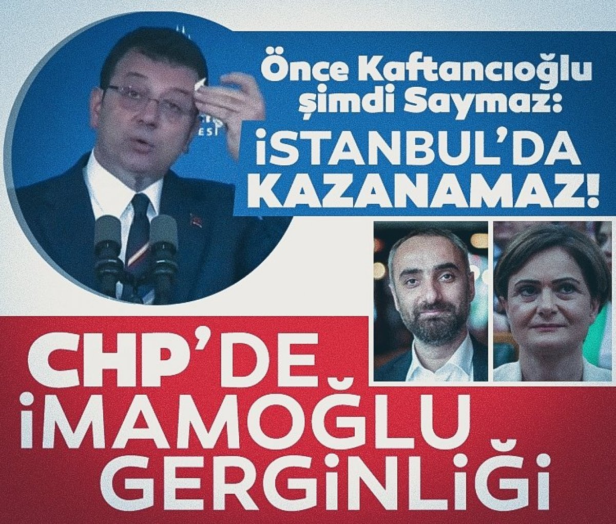 Seçime aylar kala, altılı masa hala adayını belirleyemezken, İmamoğlu İYİ Parti'nin de desteğiyle adaylık için göz kırpıyor. İmamoğlu'nun bu çıkışlarına CHP İstanbul İl Başkanı Canan Kaftancıoğlu tepki göstermiş ve ""İstanbul seçimlerinin mimarının Kemal Kılıçdaroğlu olduğunu söyleyen Canan Kaftancıoğlu, "Siyasetçiler genelde başkalarının emeğinin üzerine konmayı severler. Bu bir alışkanlık oldu" ifadelerini kullanmıştı. Kaftancıoğlu'nun bu çıkışına gazeteci İsmail Saymaz tepki gösterdi. Saymaz, Artık İstanbul'da CHP'nin kazanmasının çok zor olduğunu dile getirdi.