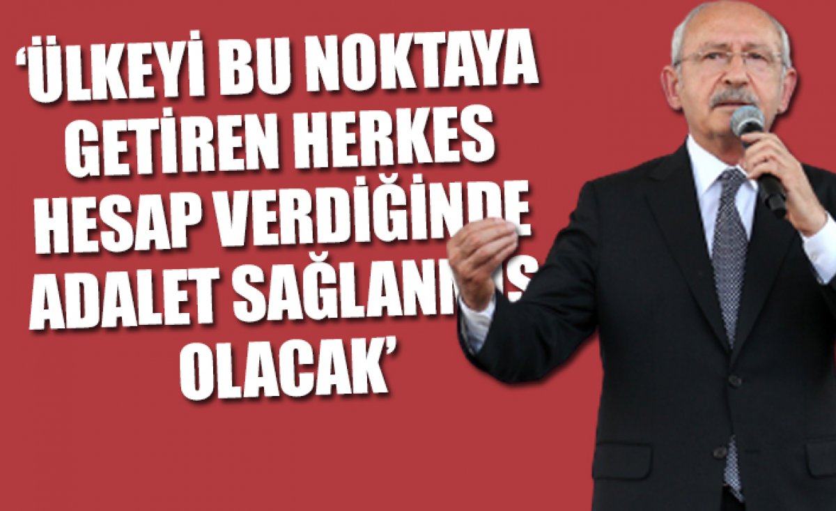 CHP Genel Başkanı Kemal Kılıçdaroğlu, 15 Temmuz Darbe Girişiminin yıldönümünde paylaştığı mesajında; Ülkeyi bu noktaya getiren herkes hesap verdiğinde, hak yerini bulmuş, adalet sağlanmış olacak ifadelerini kullandı.