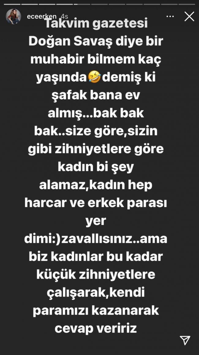 Ece Erken" Şafak bana ev almadı"