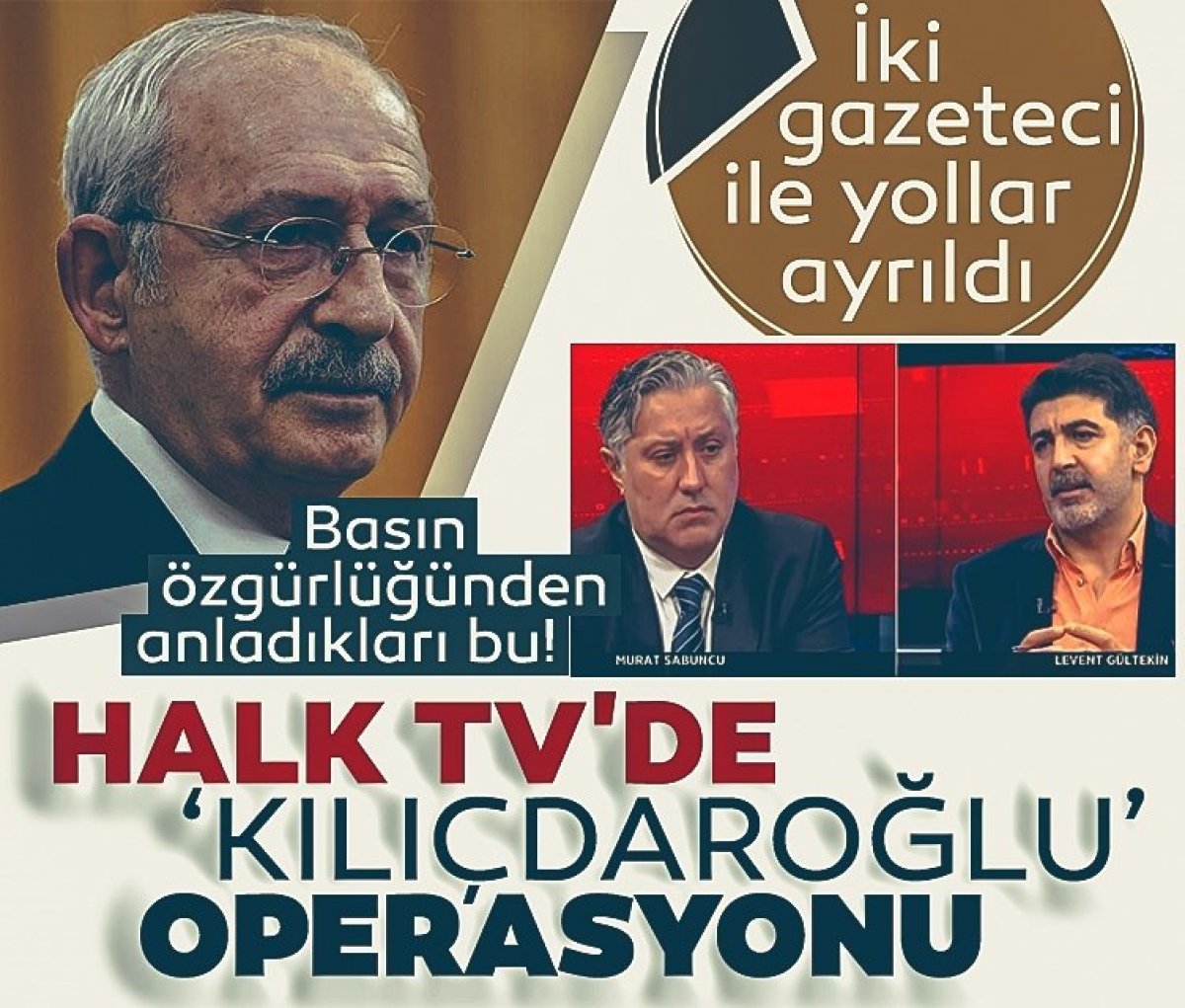 CHP Genel Başkanı Kemal Kılıçdaroğlu, Halk TV'de büyük bir operasyon gerçekleştirdi. Gazeteci Levent Gültekin ve Murat Sabuncu canlı yayında sarf edilen sözler nedeniyle kanaldan gönderildi. Gültekin, "Kemal Bey'in adaylığını organize eden kişi, iki ay önce bir ev sohbetinde 'Kemal Bey'i aday yapıyoruz, muhtemelen Türkiye'yi kurtaramayacağız ama partiyi kurtaracağız. Genel başkan yardımcılarına da iletildi bu." ifadeleri ile CHP yönetiminin hedefi olmuştu.