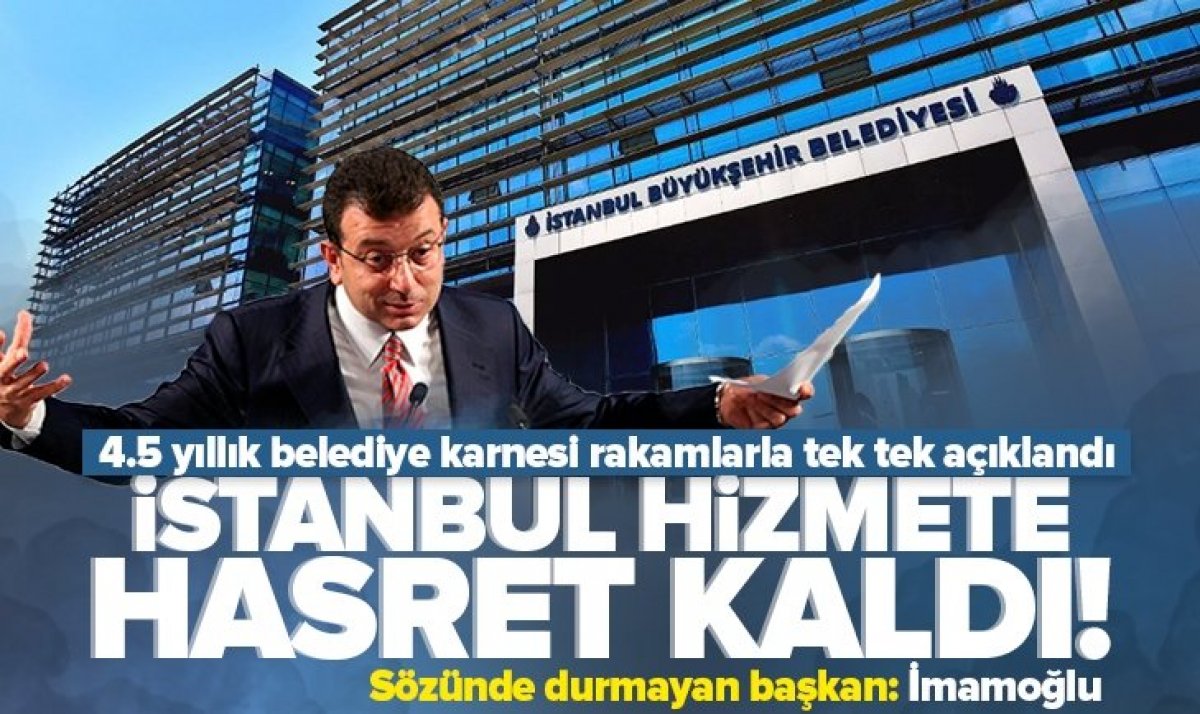 İstanbul'un başına bela olan CHP yönetimi 'hizmet' kelimesinin ne olduğunu bile bilmeyen bir vaziyette, vatandaşa çile çektiriyor. İstanbul Büyükşehir Belediye Başkanı Ekrem İmamoğlu, İstanbul halkının sıkıntılarıyla uğraşmak, büyükşehirdeki refahı sağlamak yerine 'koltuk’ derdine düşüyor. İBB Başkanı Ekrem İmamoğlu’nun 4.5 yıllık İBB performansı, meclis kürsüsünden rakamlarla tek tek açıkladı. .