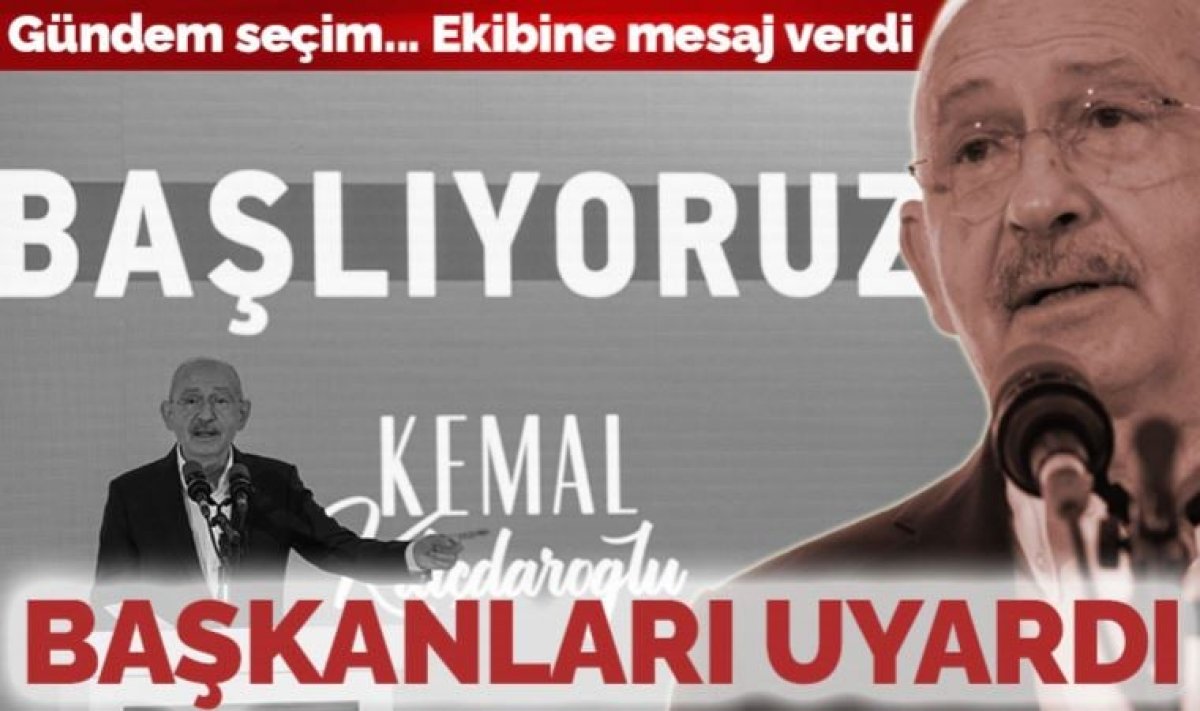 CHP Genel Başkanı Kemal Kılıçdaroğlu, partisinin belediye başkanlarıyla “seçim" gündemi için buluştu. Kılıçdaroğlu, ekibine “Bize de yüksek anketler geliyor ama kampanyayı sanki kafa kafaya bir yarış varmış gibi yürüteceksiniz. Yereldeki başarıyı genelde göstermeliyiz" diye seslendi.