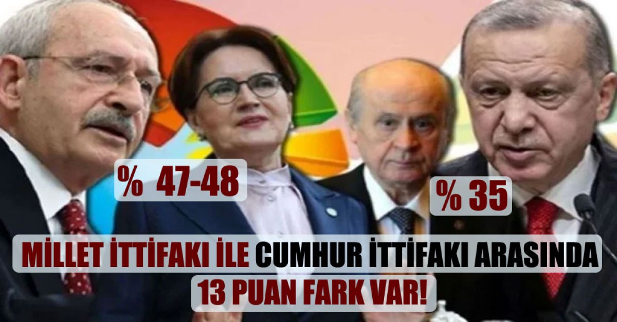 Millet İttifakı ile Cumhur İttifakı arasında 13 puan fark var!