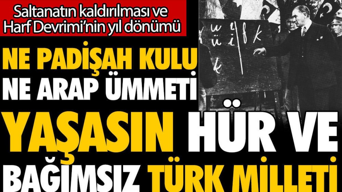 Ne padişah kulu ne de Arap ümmeti yaşasın hür ve bağımsız Türk milleti... Saltanatın kaldırılması ve Harf Devriminin yıl dönümü