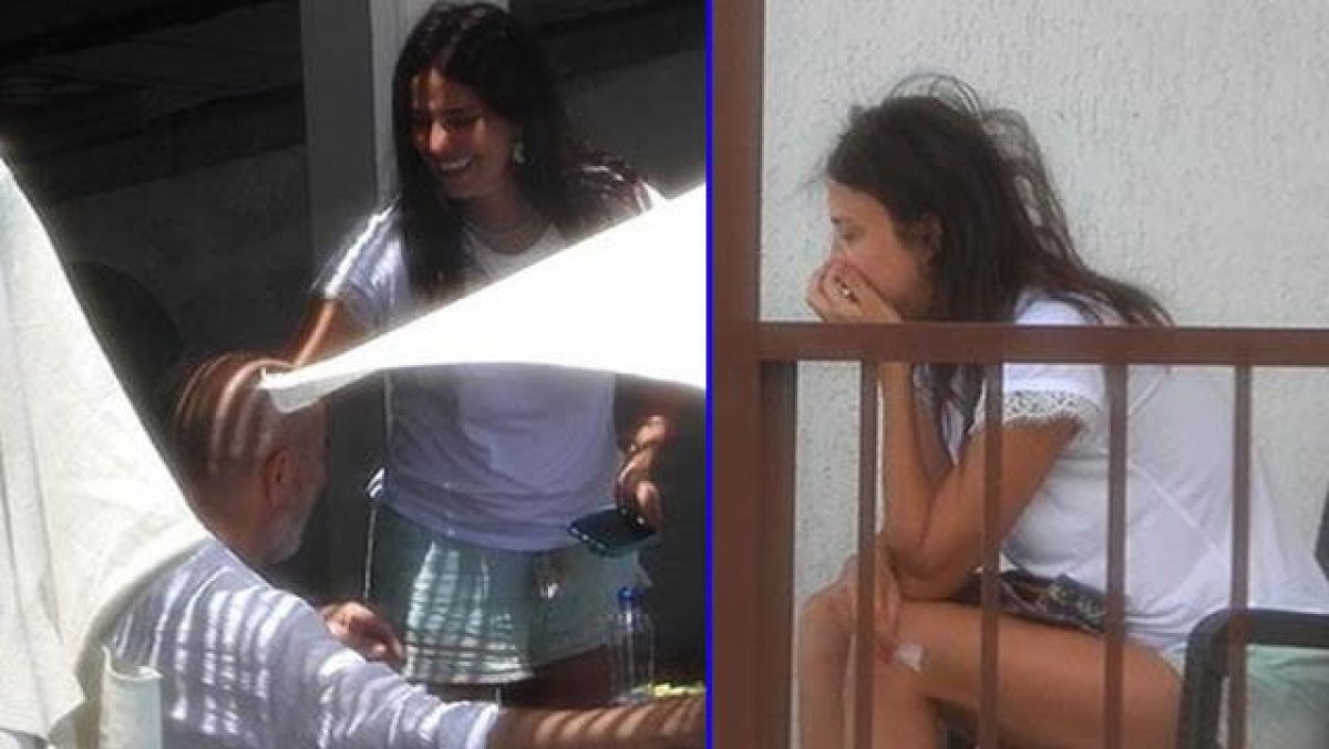 Güneş battıktan sonra plajda kimsenin kalmamasını fırsat bilen oyuncu, önce iskelede zıpladı, ardından arkadaşına su atarak şakalaştı. Zıplarken ayağını burkan Nehir Erdoğan topallayarak otelin yolunu tuttu.
