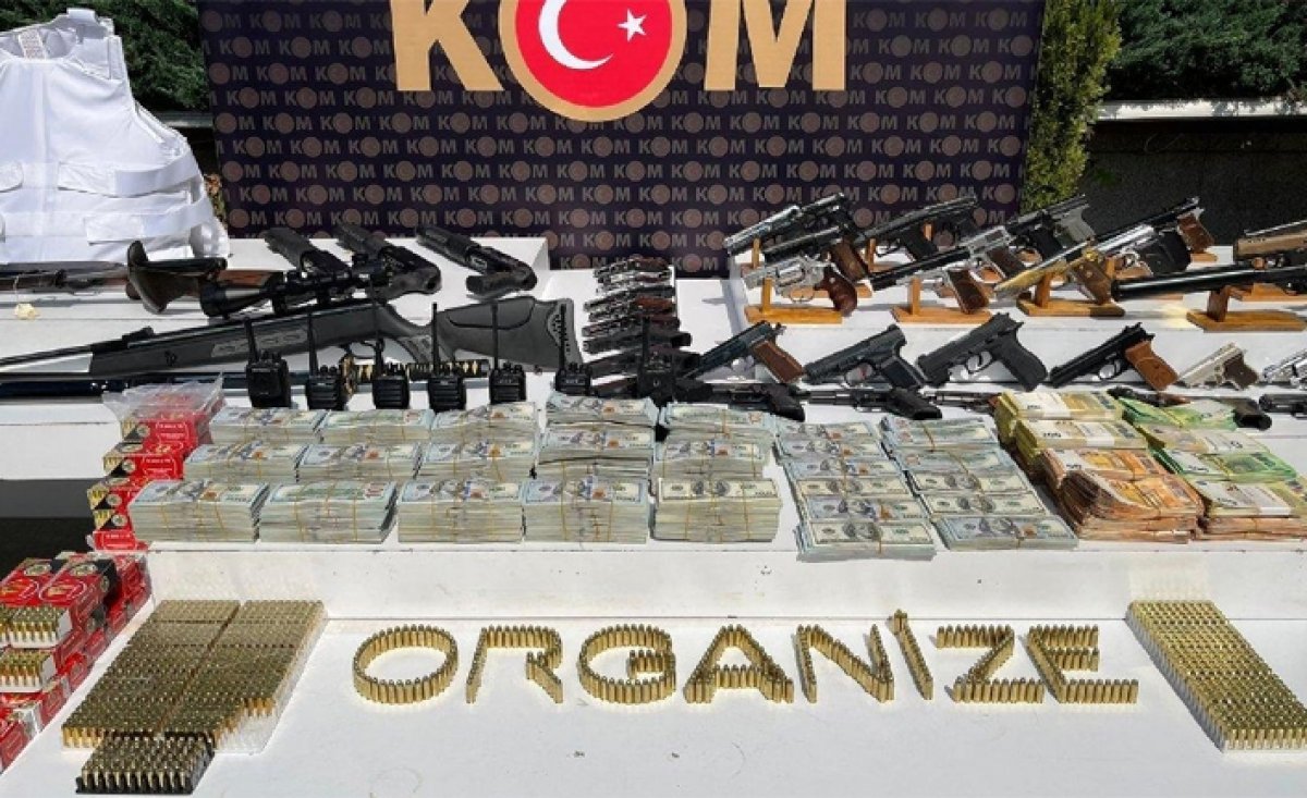 Şüphelilerin evlerinde yapılan aramalarda 46 adet ruhsatsız tabanca, 55 adet şarjör, 6 adet av tüfeği,7 adet kılıç, 7 adet telsiz, 1 adet kalem şeklinde suikast silahı, 1 adet susturucu, bin adet fişek, 3 hançer, 1 adet çelik yelek, çok sayıda çek, senet ve dijital materyal, 900 bin dolar ve 413 bin euro ele geçirildi.