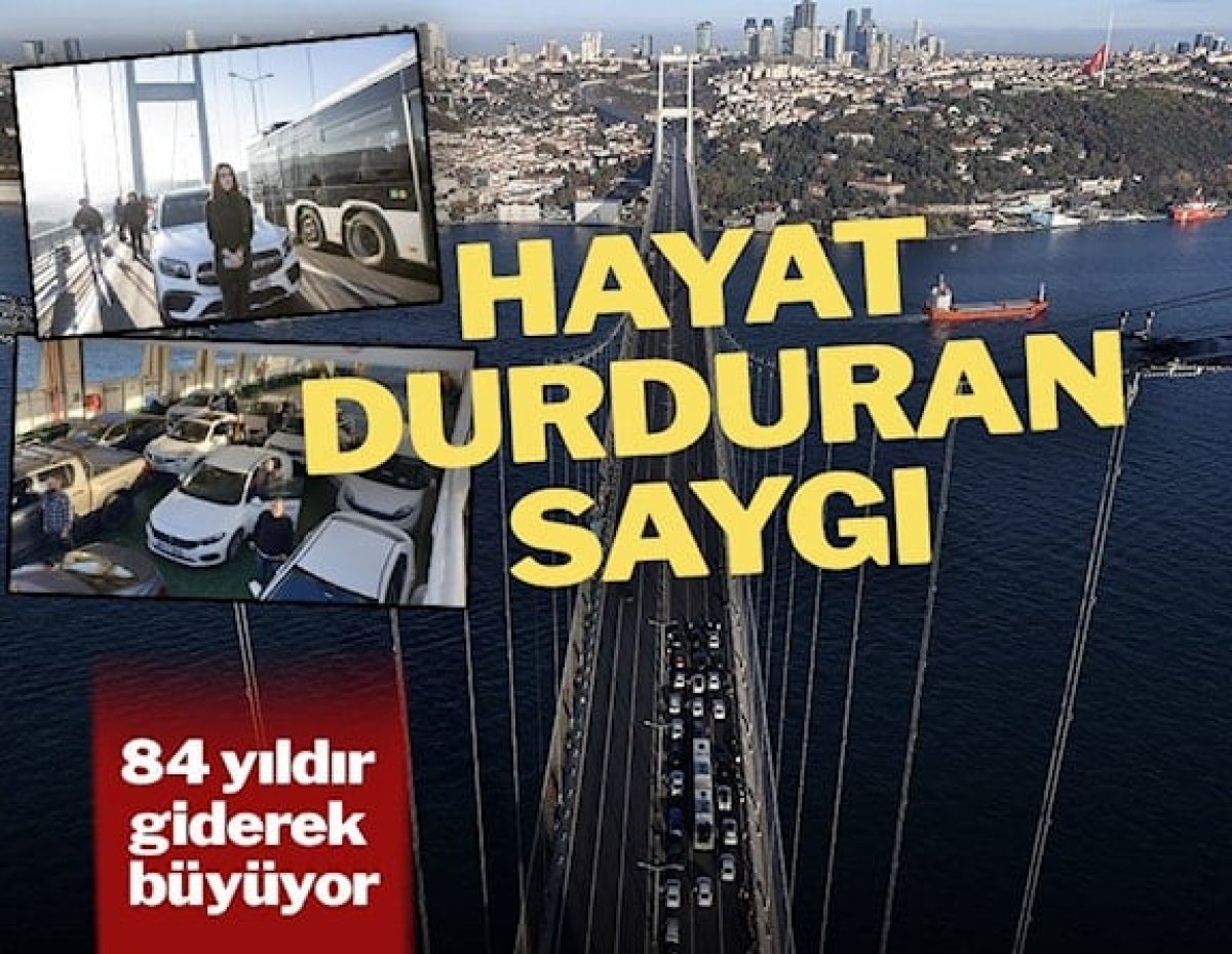 Boğazdan geçen yerli ve yabancı gemiler siren çaldı. Saygı duruşunun ardından sürücüler, araçlarına binerek köprüden ayrıldı. Trafik bir dakika boyunca köprüde durdu.
